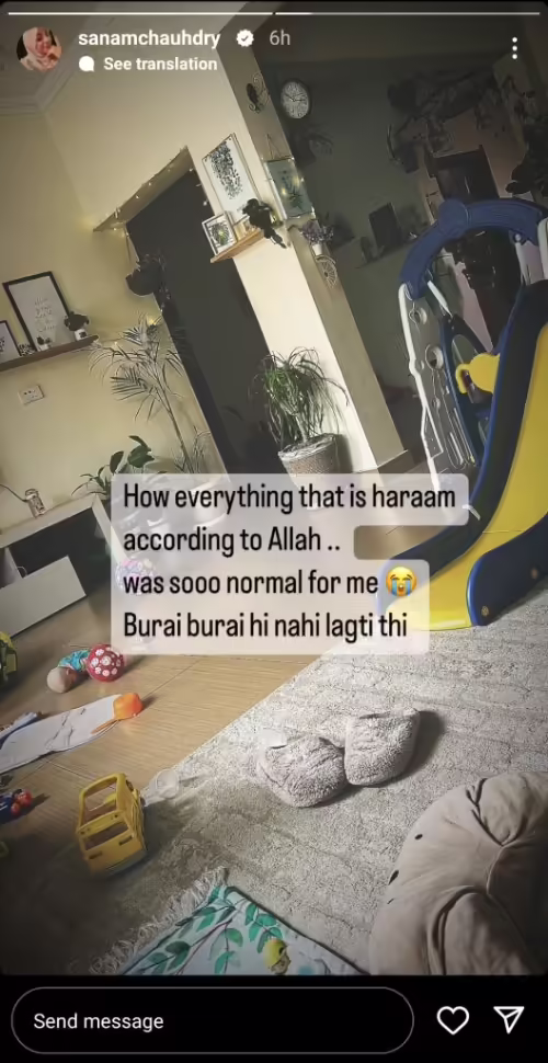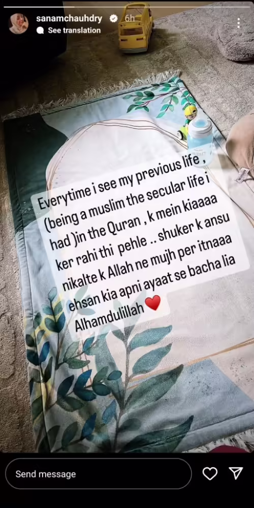 آج صنم چوہدری نے اپنے انسٹاگرام پر ایسی کہانیاں پوسٹ کی ہیں جس میں انہوں نے اعتراف کیا ہے کہ انہیں اپنی گزشتہ زندگی پر پچھتاوا ہے۔ اس نے لکھا کہ وہ ہر وہ کام کر رہی تھی جس کی اسلام میں ممانعت تھی اور تمام حرام اور گناہوں نے اس وقت اسے کبھی پریشان نہیں کیا۔ انہوں نے کہا کہ جب بھی میں اپنی پچھلی زندگی پر نظر ڈالتی ہوں تو مجھے اپنی غلطیوں پر پچھتاوا ہوتا ہے، ایک مسلمان ہونے کے ناطے میں سیکولر طرز زندگی گزار رہی تھی، میں اپنی زندگی میں کیا کر رہی تھی، یہ سوچ کر میری آنکھیں نم ہو جاتی ہیں کہ اللہ تعالیٰ نے اس پر بارش کر دی ہے۔ مجھ پر رحمتیں نازل ہوئیں اور مجھے بدل دیا، الحمدللہ۔ یہاں اس کی کہانیاں ہیں: