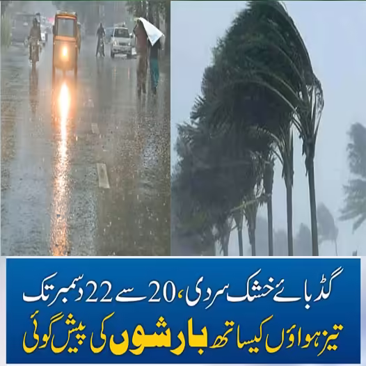 اسی طرح گلگت بلتستان کے اضلاع دیامر، استور اور سکردو میں بارش اور برفباری، بعض مقامات پر شدید برفباری کی توقع ہے۔آزاد کشمیر کے علاقوں نیلم ویلی، مظفرآباد، باغ اور راولاکوٹ میں بارش اور برفباری کا امکان ہے۔ رپورٹ کے مطابق اسلام آباد اور راولپنڈی میں 20 سے 21 دسمبر کے دوران گرج چمک کے ساتھ بارش متوقع ہے۔گلیات اور مری میں تیز ہواؤں کے ساتھ بارش اور برفباری کی پیشگوئی ہے۔ وسطی پنجاب کے مختلف علاقوں میں مطلع ابر آلود رہنے اور ہلکی بوندا باندی کا امکان ہے۔