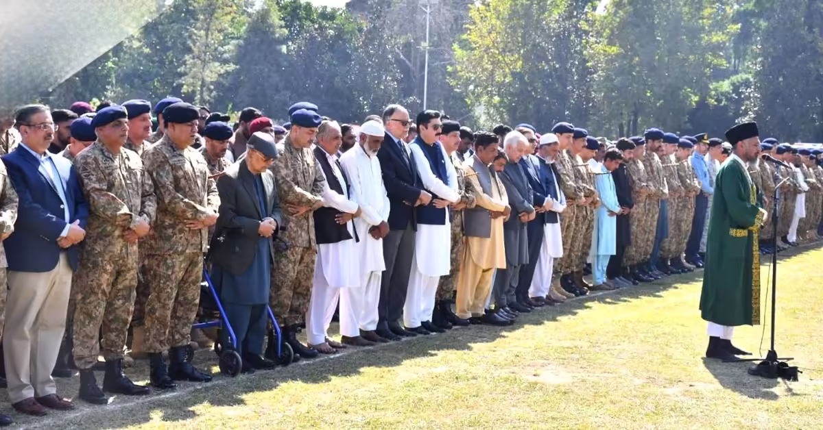 پاک فوج کے شعبۂ تعلقاتِ عامہ (آئی ایس پی آر) کے مطابق نمازِ جنازہ میں چیف آف آرمی اسٹاف فیلڈ مارشل سید عاصم منیر نے شرکت کی۔ اس موقع پر وفاقی وزرا، گورنر خیبر پختونخوا، سینئر سول و عسکری حکام اور عوام کی بڑی تعداد بھی موجود تھی۔